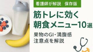 健康【保存版】筋トレに効く朝食メニュー10選|果物のGI・満腹感・注意点を看護師が解説 当サイトはアフィリエイト広告を利用しています。(PR)【結論】“目的×タイミング×消化の軽さ”で朝食を選べば、トレの質も1日の集中力も伸びます。目的、時間別での食事内容の例を下記に書いてます。トレ前60〜90分:低〜中GIの炭水化物+たんぱ... 2025.08.24健康筋トレ