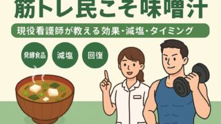 健康筋トレ民こそ味噌汁!現役看護師が教える“発酵×うま味”の底力 【結論】味噌汁は、①発酵由来のペプチド・イソフラボンなどの機能性成分、②具材からのたんぱく質・カリウム・マグネシウム、③うま味による満足度アップと減塩が同時に狙える“日本最強の回復スープ”。発酵過程で生まれる成分や大豆ペプチドは心血管リスク... 2025.08.26健康