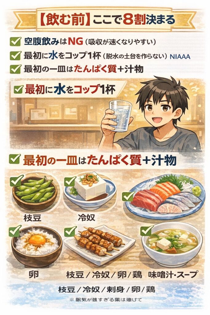 その場は楽しい。だけど翌日、頭痛・吐き気・だるさで動けないと「何してんだ俺…」ってなる。だから、この記事のゴールはシンプル。