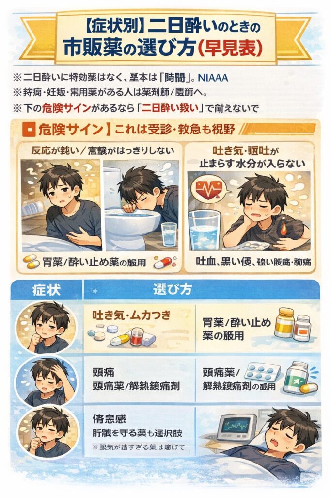 【症状別】二日酔いのときの市販薬の選び方(早見表)