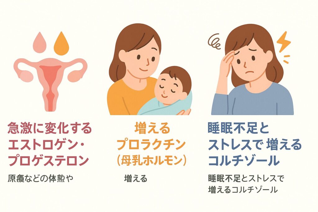 - 産後、体型が崩れたと感じるのはホルモン・授乳・寝不足による自然な変化