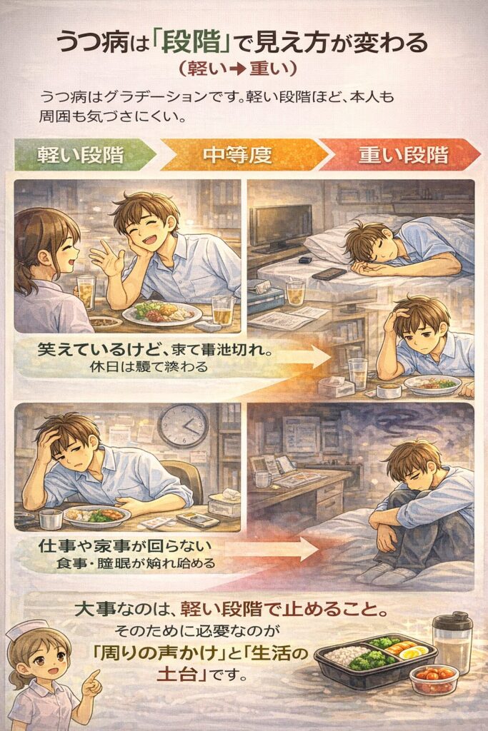 うつ病は「段階」で見え方が変わる(軽い→重い)