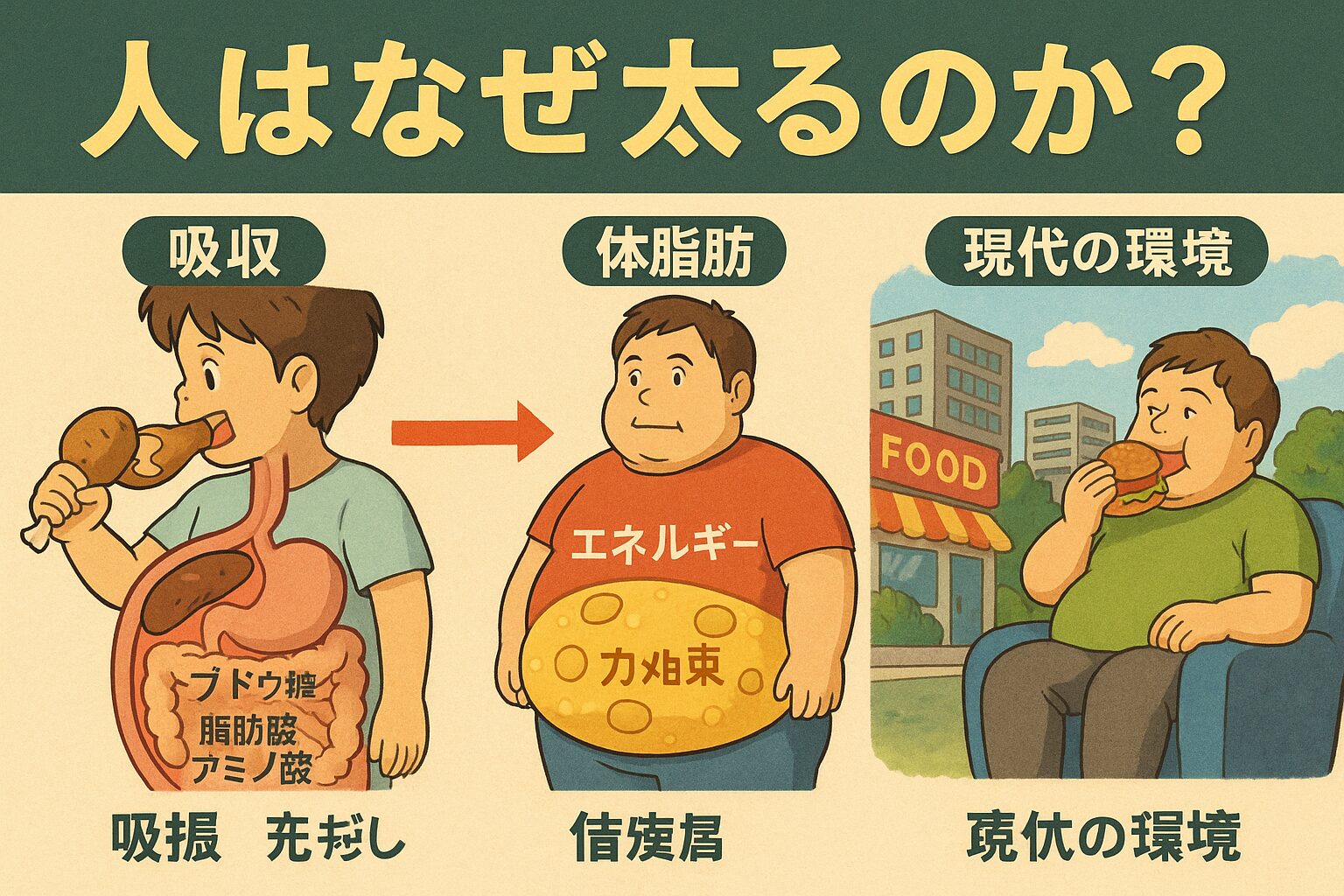 太る=意思が弱いだけじゃなく、体の設計として「余ったら貯める」が標準仕様なんです。