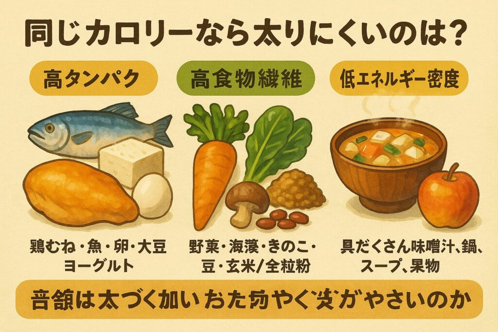 同じカロリーでも、太りにくさは体感的に差が出ます。理由は3つ。