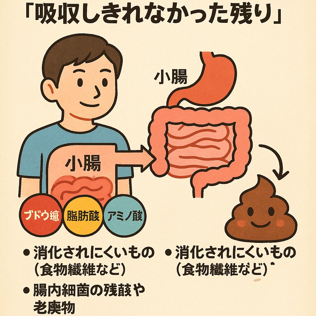 結論から言うと、便として出るのは食べ物の残りカスであって、エネルギー(栄養)は出る前に体へ吸収されているから。