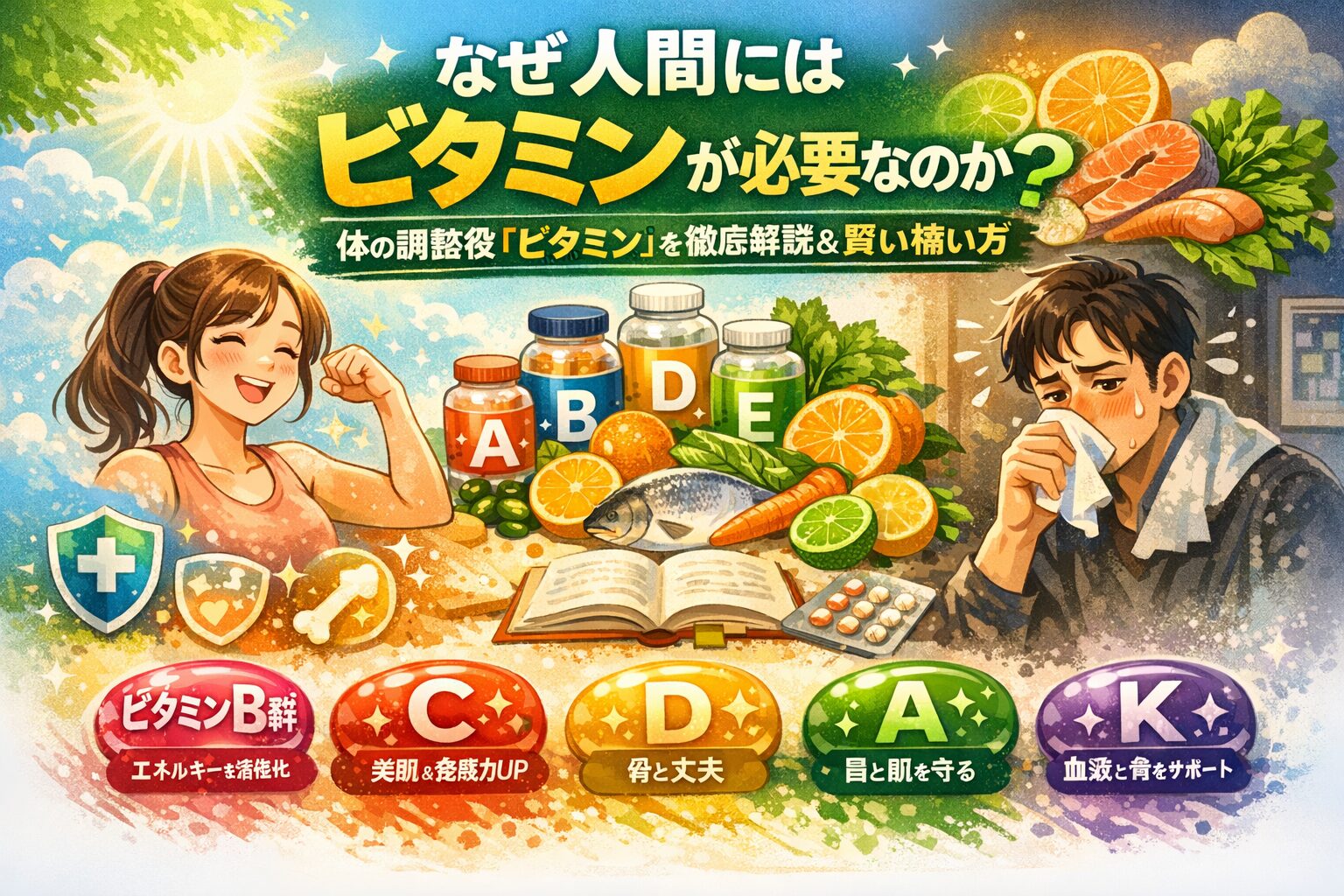 この記事では 「なぜビタミンが必要なのか」 を徹底解説。忙しい現代人に合った賢い摂り方もご紹介します。
